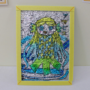 今回はかの有名な妖怪、アマビエの絵をステンドグラス風に描きました!